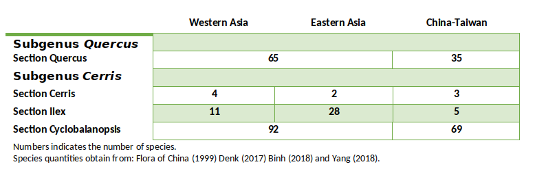 Oak species diversity in Asia